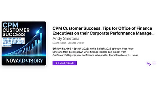 Hosted by Nova Advisory's Andy Smetana, The CPM Customer Success Podcast features real stories, strategies, and insights from finance leaders using OneStream’s unified platform to drive performance.